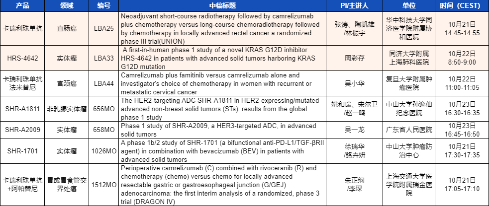 ESMO 2023 九游会·J9医药产品相关研究一览